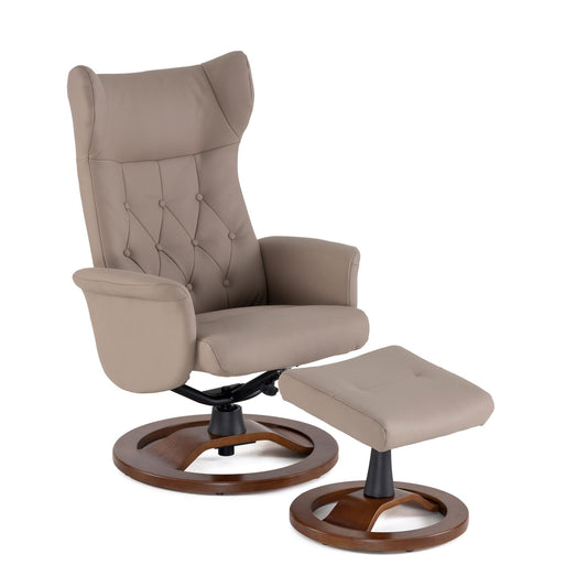 Poltronas reclináveis e giratórias, revestidas em couro, com mecanismo de giro inteligente....
